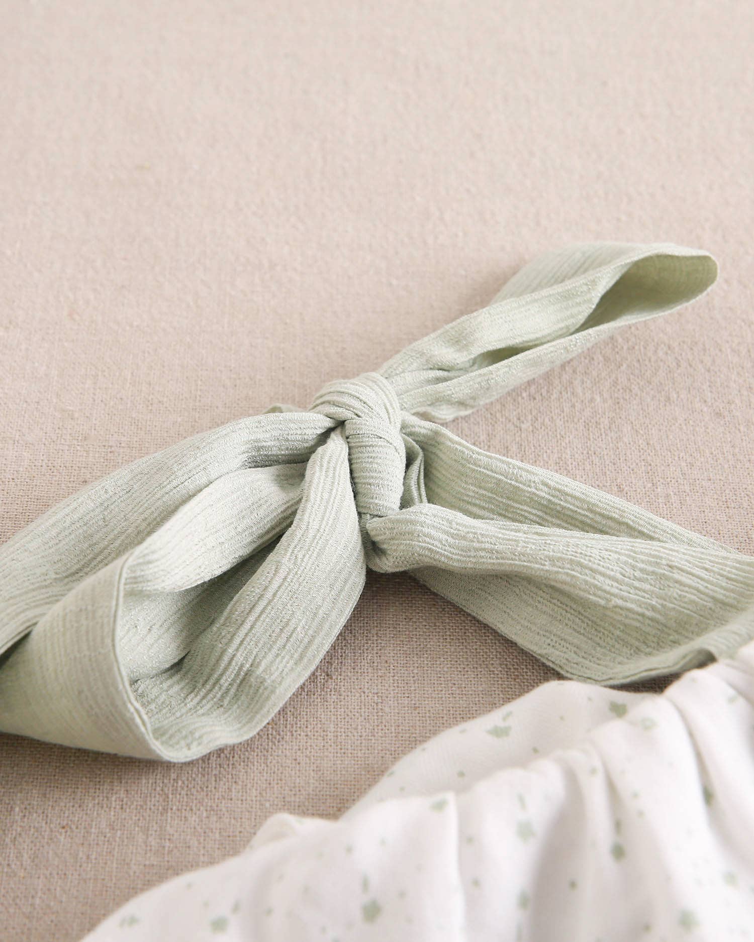 Abito da bambina verde pastello con volant asimmetrico e fiocco