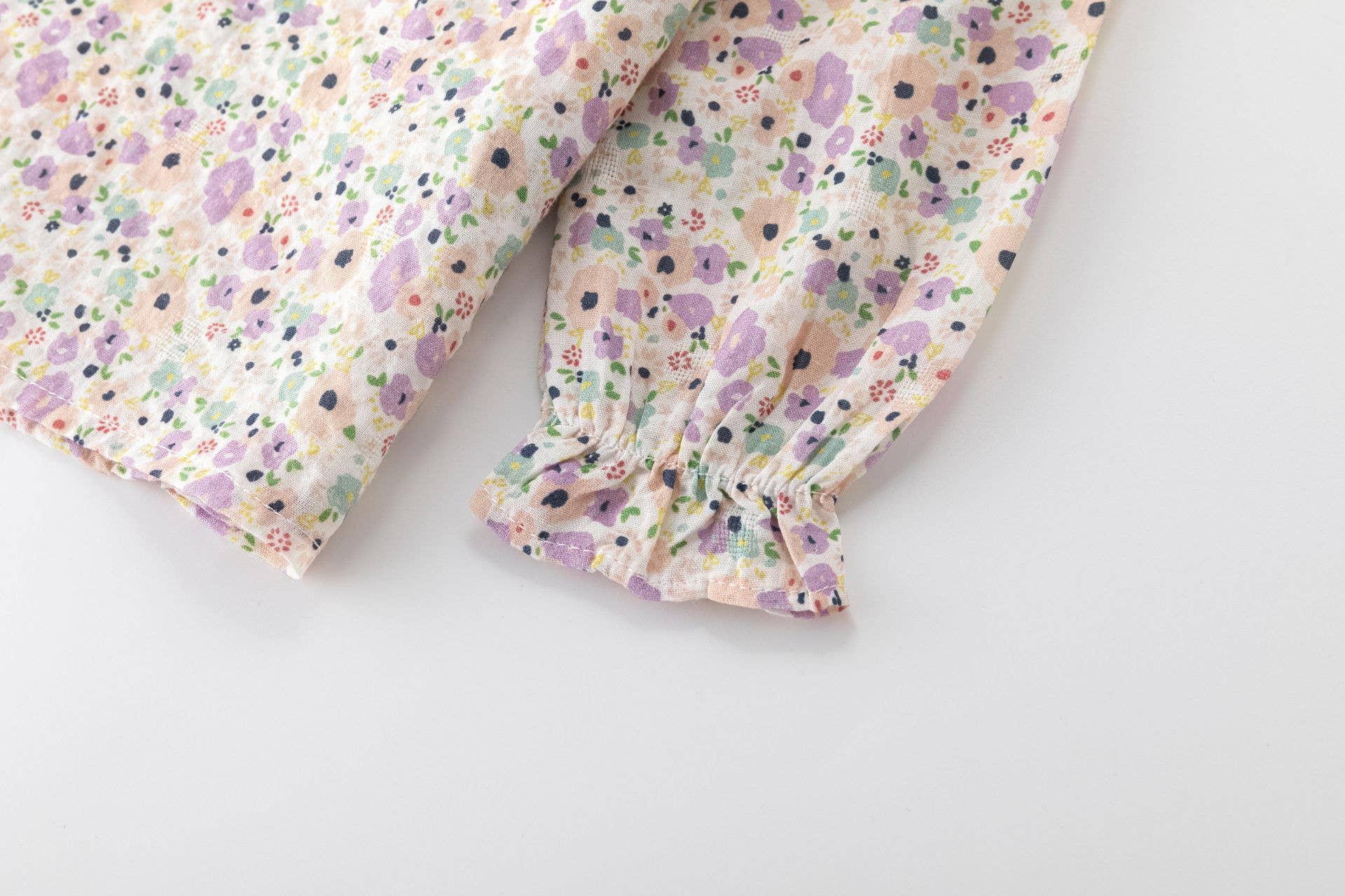 Blusa a maniche lunghe con colletto volant in tono, elastici all'interno del polsino. Chiusura con bottoni sul retro Abbigliamento per bambina fino a 2 anni