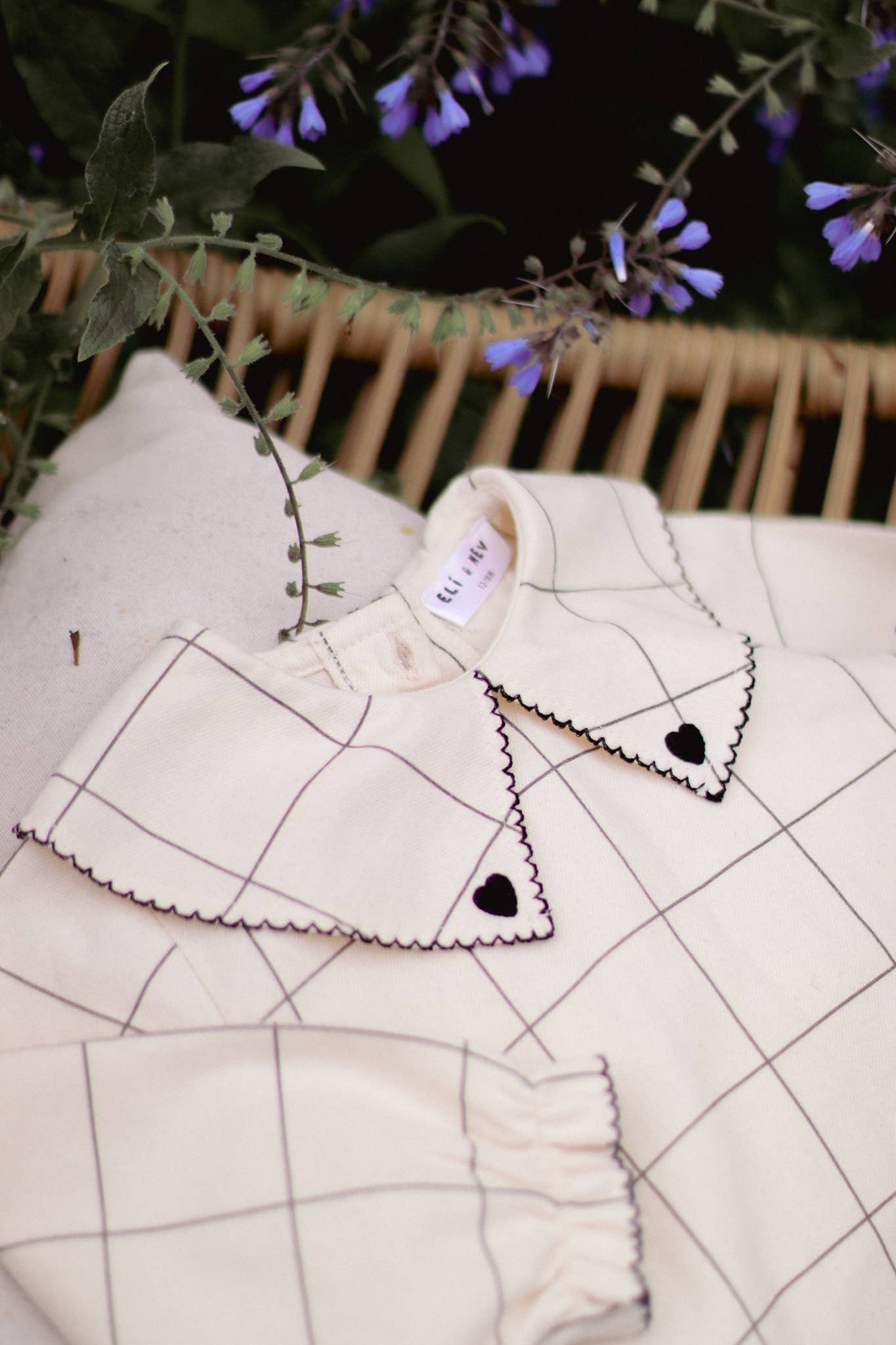 Camicetta per neonata/bambina con motivo a quadri 100% cotone OEKO-TEX panna