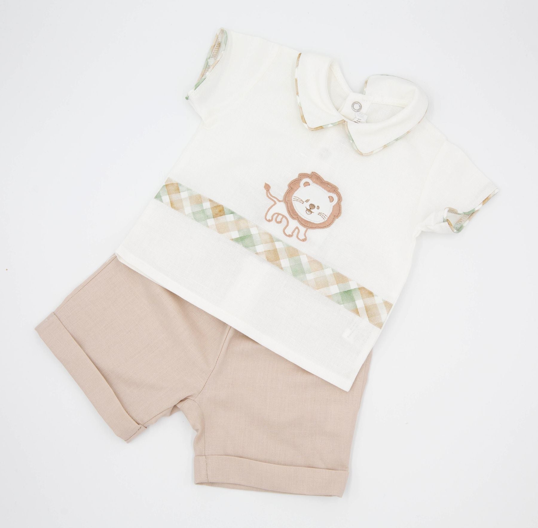 Completo pantaloncino e camicetta Realizzati in Italia con tessuti di alta qualità, questi capi sono perfetti per un look elegante e fresco. Il lino è noto per la sua leggerezza e traspirabilità, perciò sono ideali per le giornate di sole. Aggiungi un tocco di stile italiano al tuo guardaroba con il clinico corto leone salvia/sabbia.