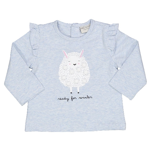 Maglietta manica lunga celeste con graziosa pecorella sul fronte e piccoli pompom