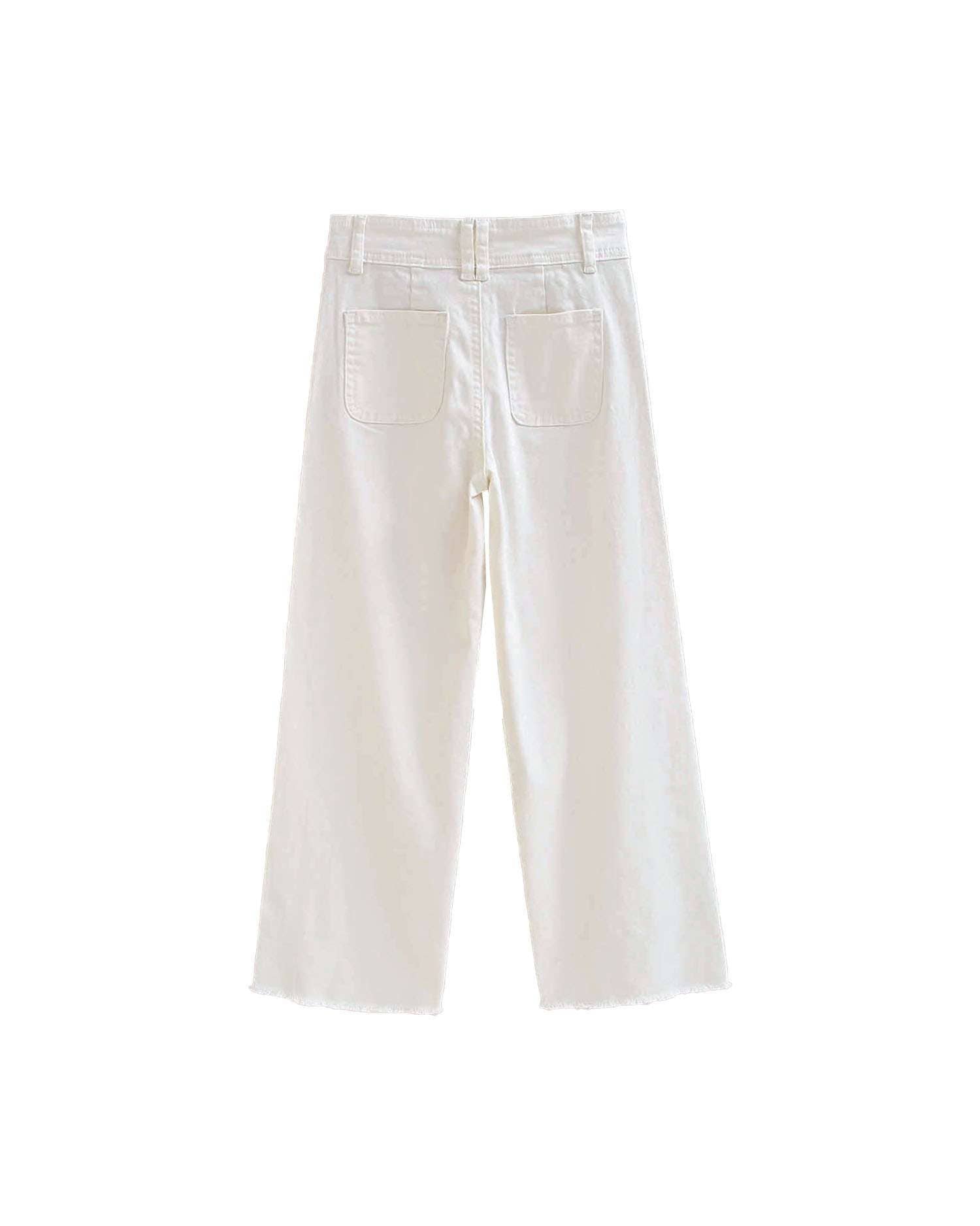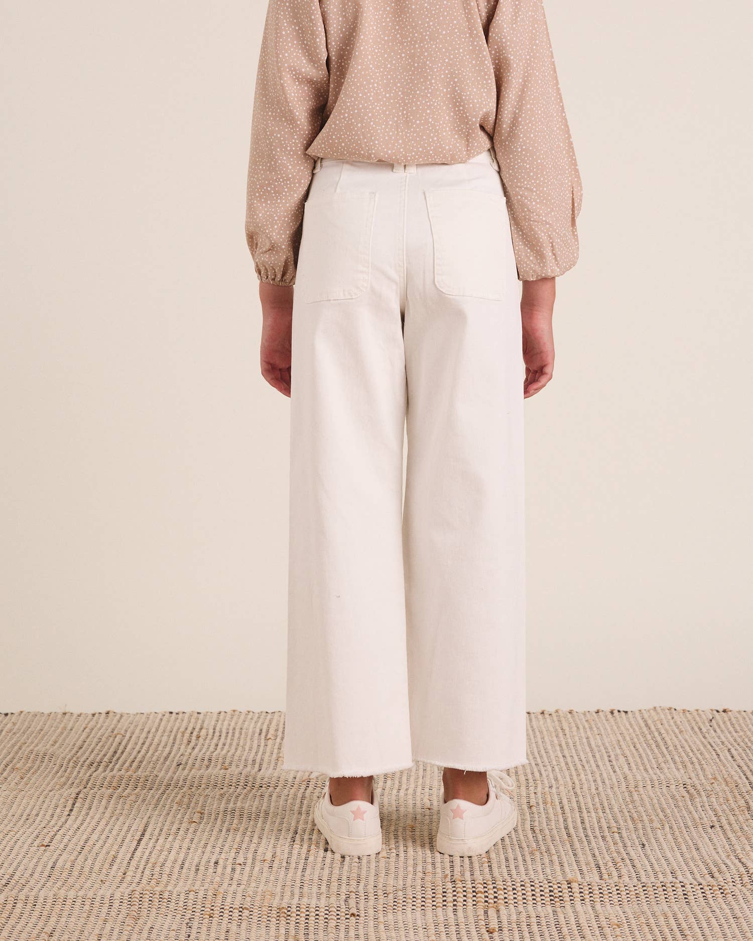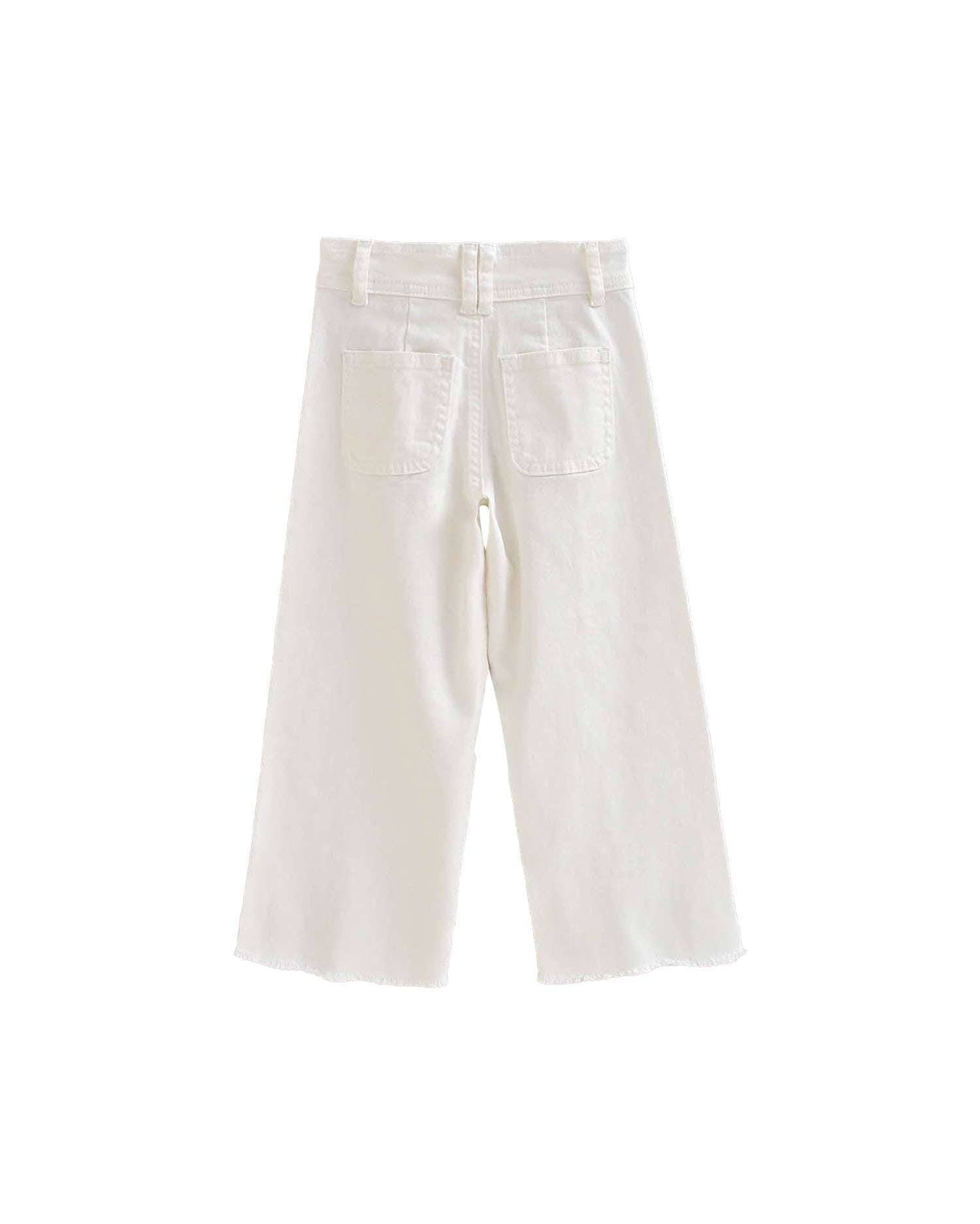 Pantaloni culotte modello jeans colore bianco da bambina, taglio svasato